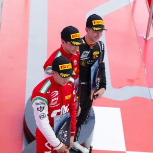 El podio lo completó el italiano Emanuele Olivieri (R-ace GP), quien pese a una complicada largada logró remontar hasta la tercera plaza.
