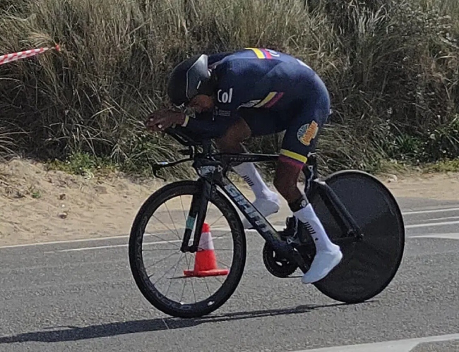 Diego Dueñas Gómez obtuvo el tercer lugar en la contrarreloj C4 de la competencia internacional, al registrar un tiempo de 39 minutos y 36 segundos esto en un recorrido de 29.2 km. El francés Mattis Lebeau ganó la prueba con un tiempo de 37 minutos y 59 segundos y el británico Archie Atkinson fue segundo con una marca de 38:50.