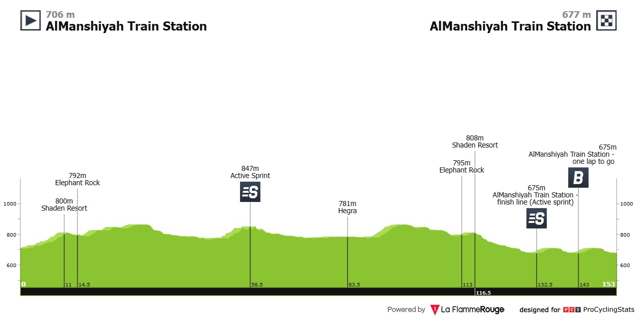 La carrera árabe continuará este miércoles en un trayecto ondulado de 152 kilómetros con salida y llegada en AlManshiyah Train Station.