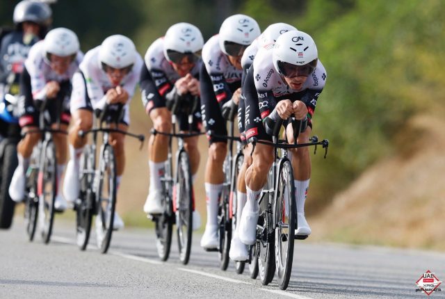 El bloque emiratí fue el más sólido y paró el reloj en 25:26, un registro que nadie pudo superar. Team Visma | Lease a Bike se quedó a 8″ y Lidl–Trek completó el podio a 9″. También rindieron a gran nivel Red Bull–BORA hansgrohe (+12″) e Ineos Grenadiers (+16″).