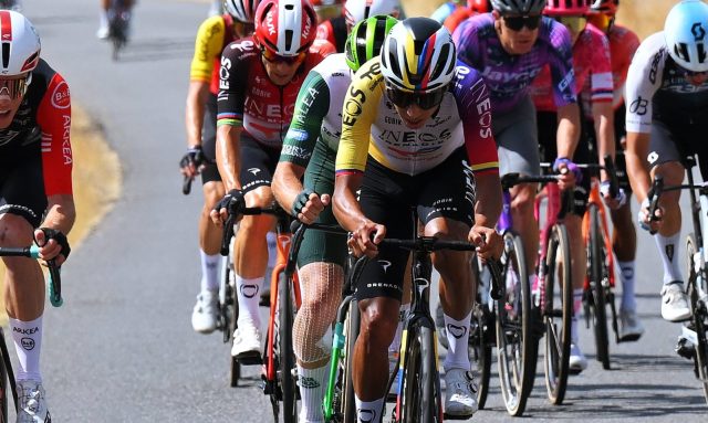 Sin embargo, en el pelotón Jay Vine lidera el ascenso disminuyendo rápidamente la diferencia. A falta de 3 kilómetros apra el final la fuga llega a su fin.